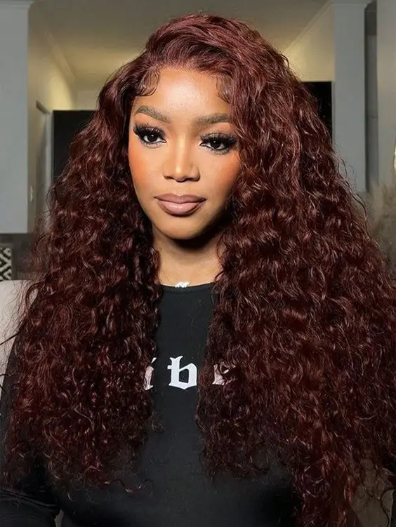 13x4 Reddish Brown Deep Wave Curly Wig Human Hair Hd Full Lace Front Wig Raw Hair hd Lace Frontal Wig for Black Women