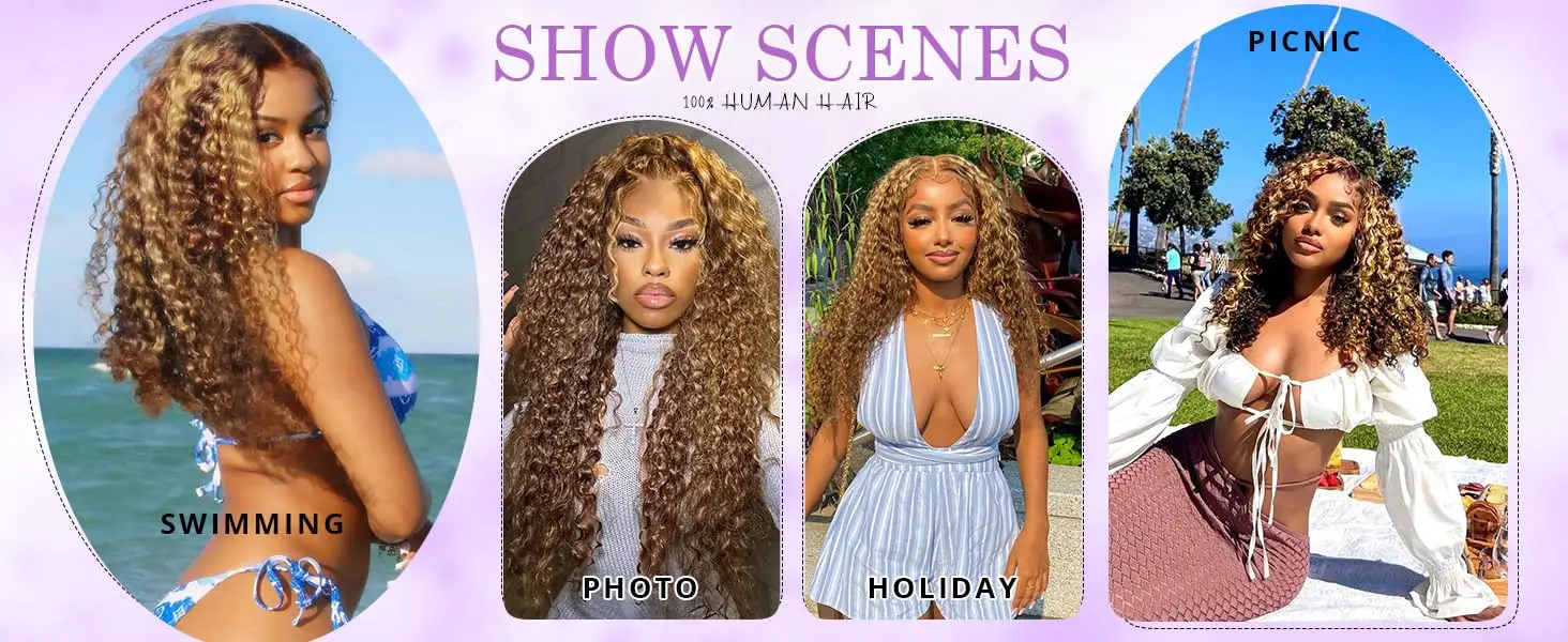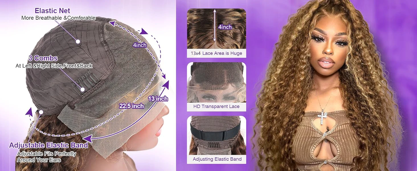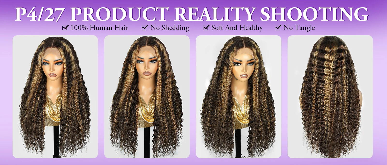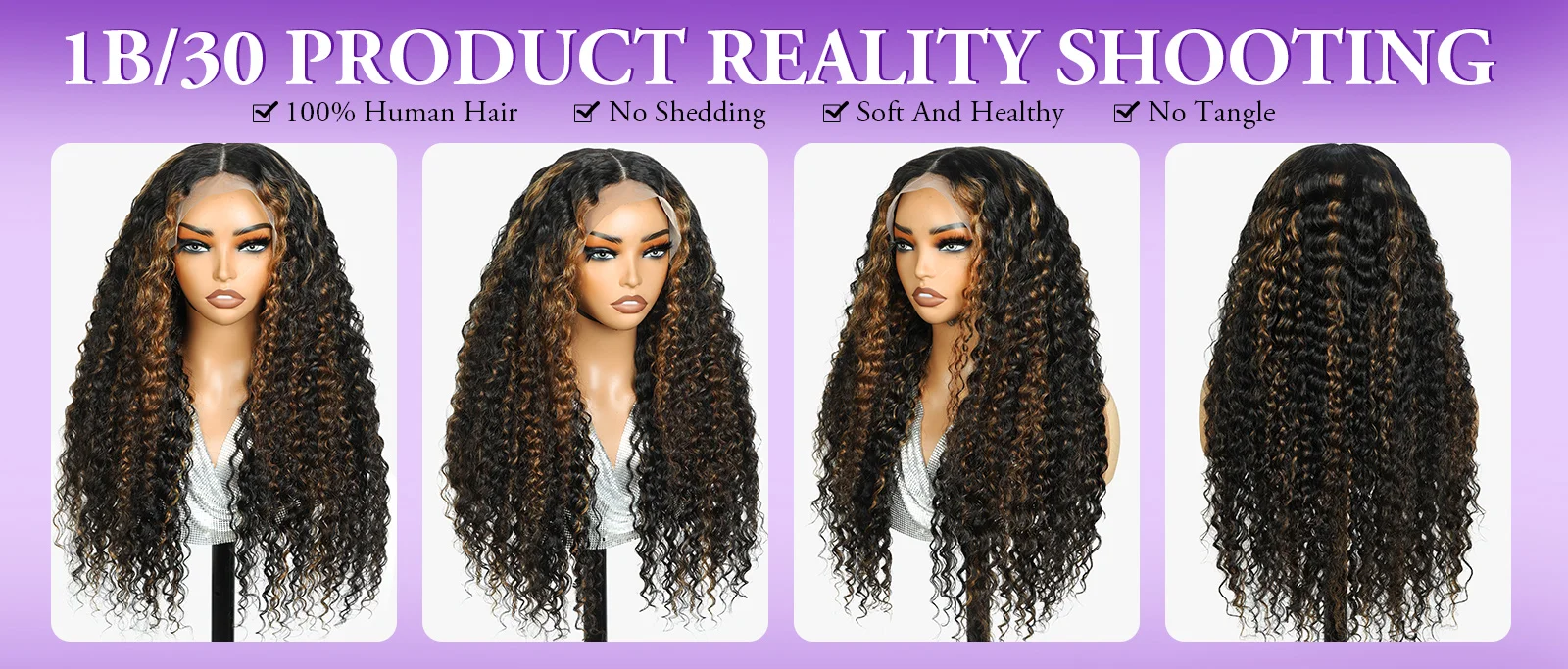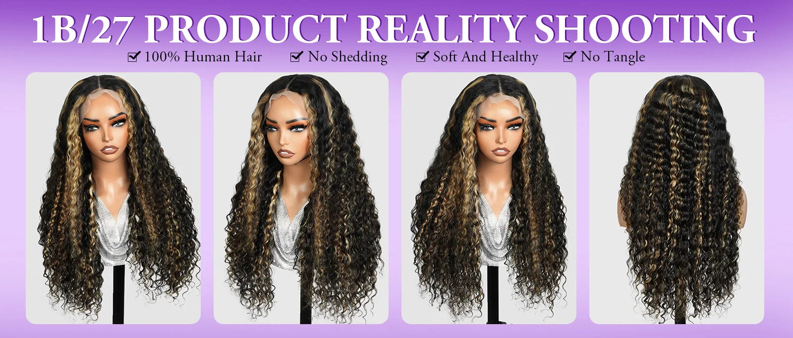 1B/27 Ombre Curly Wigs Brown 13x4 HD Lace Frontal Human Hair Wigs Wear and Go Glueless Wigs Highlight Deep Water Wave Wigs