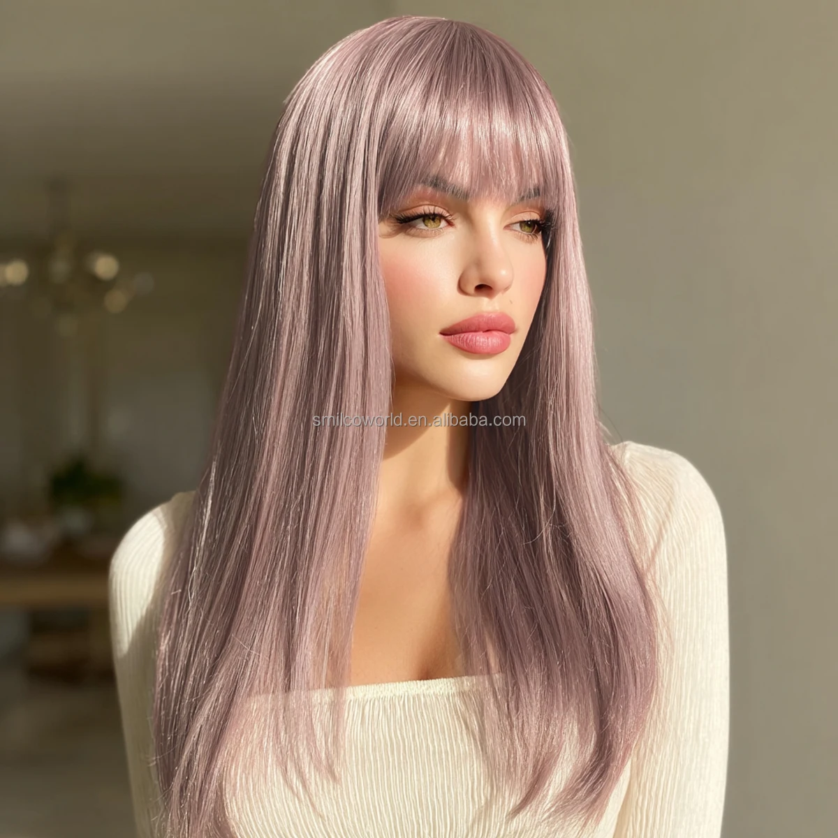 SM8022 Series 24 Inches Long Curly & Straight Synthetic Wig Pink Purple Color SM8022