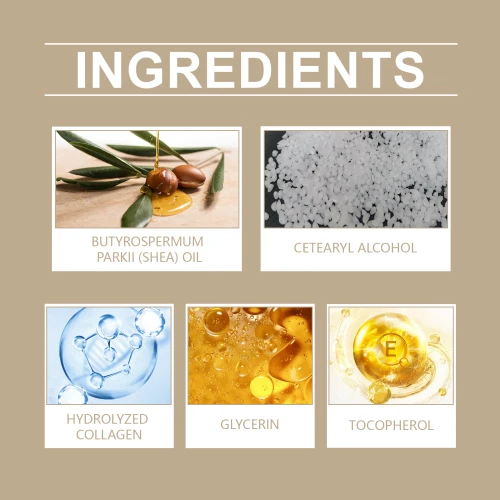 Our shea butter moisturizing hair mask contains glycerin, shea butter and cetyl stearol. It can make hair more energetic and healthy. Glycerin and shea butter double moisturize and provide long-lasting nutrition for hair. Its use method is very simple: 1. After washing hair; 2. Apply appropriate amount of hair mask to hair and massage gently to promote absorption; 3. Wait 5-10 minutes and rinse thoroughly. Make hair smooth and easy to comb, say goodbye to frizz. After use, hair becomes smoother and easier to manage.