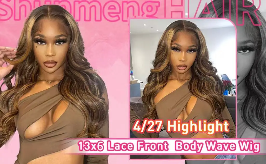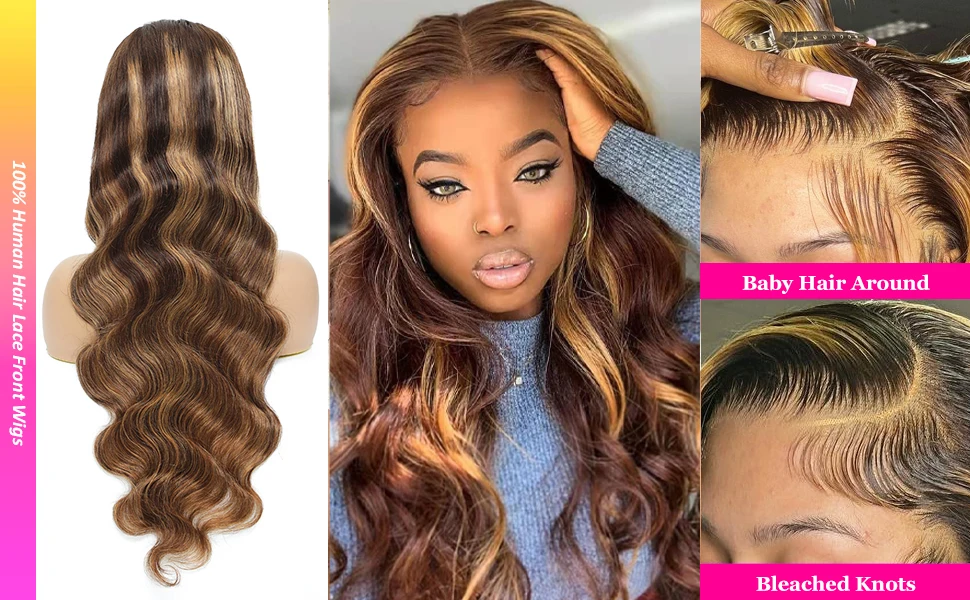 Pre Plucked P4/27 Highlight Ombre Body Wave 13x6 Human Hair Wig Honey Blonde Colored HD Lace Frontal Wigs