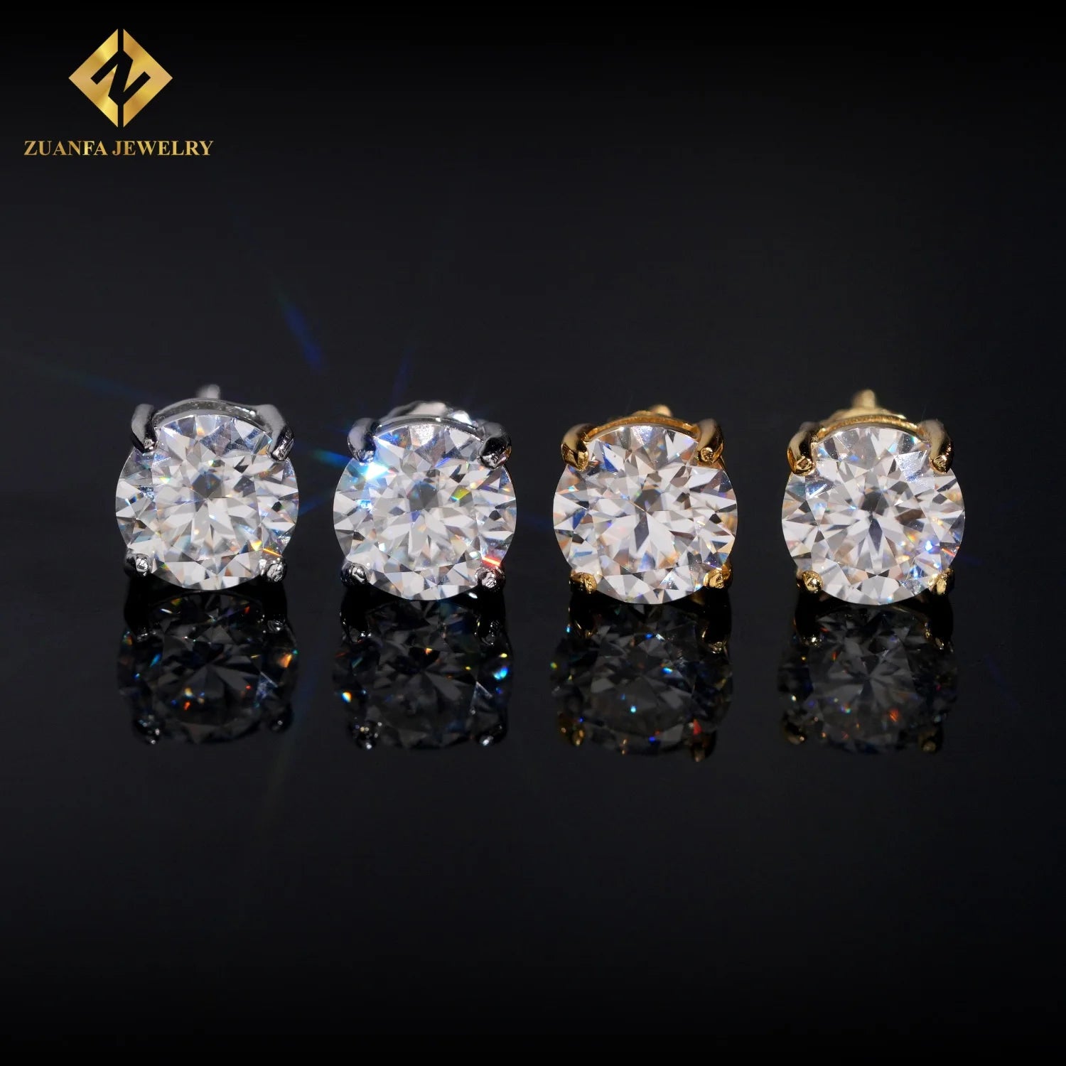 RTS Hip Hop Jewelry Iced Out 7.5mm Screw Back Round Ear Studs Vvs Moissanite Diamond 925 Sterling Silver Earrings